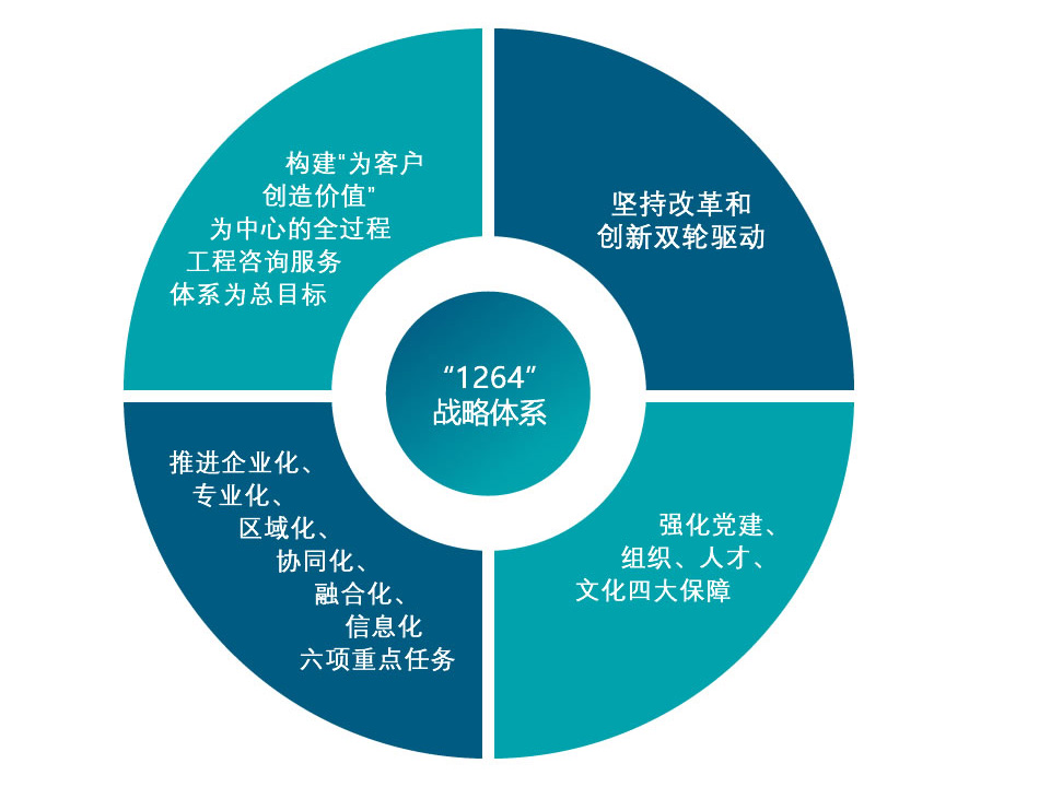 以習(xí)近平新時(shí)代中國特色社會(huì)主義思想為指導(dǎo),緊緊把握新發(fā)展格局歷史機(jī)遇,堅(jiān)定不移貫徹新發(fā)展理念,以推動(dòng)高質(zhì)量發(fā)展為主題,以市場(chǎng)需求為導(dǎo)向,全力實(shí)施“1264”戰(zhàn)略體系,即以構(gòu)建“為客戶創(chuàng)造價(jià)值”為中心的全過程工程咨詢服務(wù)體系為總目標(biāo),堅(jiān)持改革和創(chuàng)新雙輪驅(qū)動(dòng),全面推進(jìn)企業(yè)化、專業(yè)化、區(qū)域化、協(xié)同化、融合化、信息化等六項(xiàng)重點(diǎn)任務(wù),強(qiáng)化黨建、組織、人才、文化四大保障,將天咨公司全力打造成為京津冀區(qū)域領(lǐng)先的工程咨詢品牌企業(yè)和上海建科集團(tuán)區(qū)域業(yè)務(wù)發(fā)展平臺(tái)。