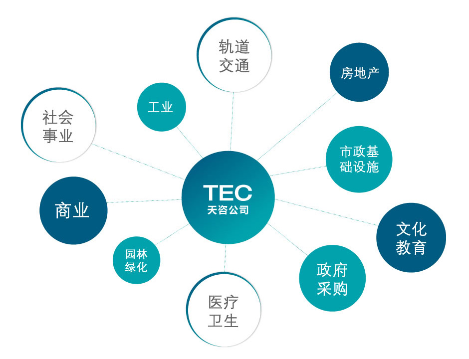天咨公司業(yè)務主要涵蓋投資咨詢、招標代理、造價咨詢、工程監(jiān)理、項目管理、施工圖設計審查、綠色建筑咨詢、PPP咨詢、全過程工程咨詢、司法鑒定等版塊。從業(yè)范圍涵蓋了市政基礎設施、社會事業(yè)、公共管理、房屋建筑、交通、能源、工業(yè)、金融、生態(tài)環(huán)境、軍工等多個領域,傳統(tǒng)優(yōu)勢行業(yè)領域為基礎設施、房地產(chǎn)、社會事業(yè)的建筑領域。